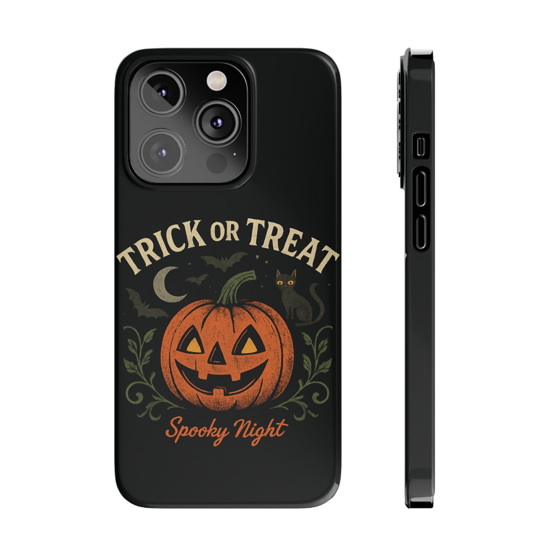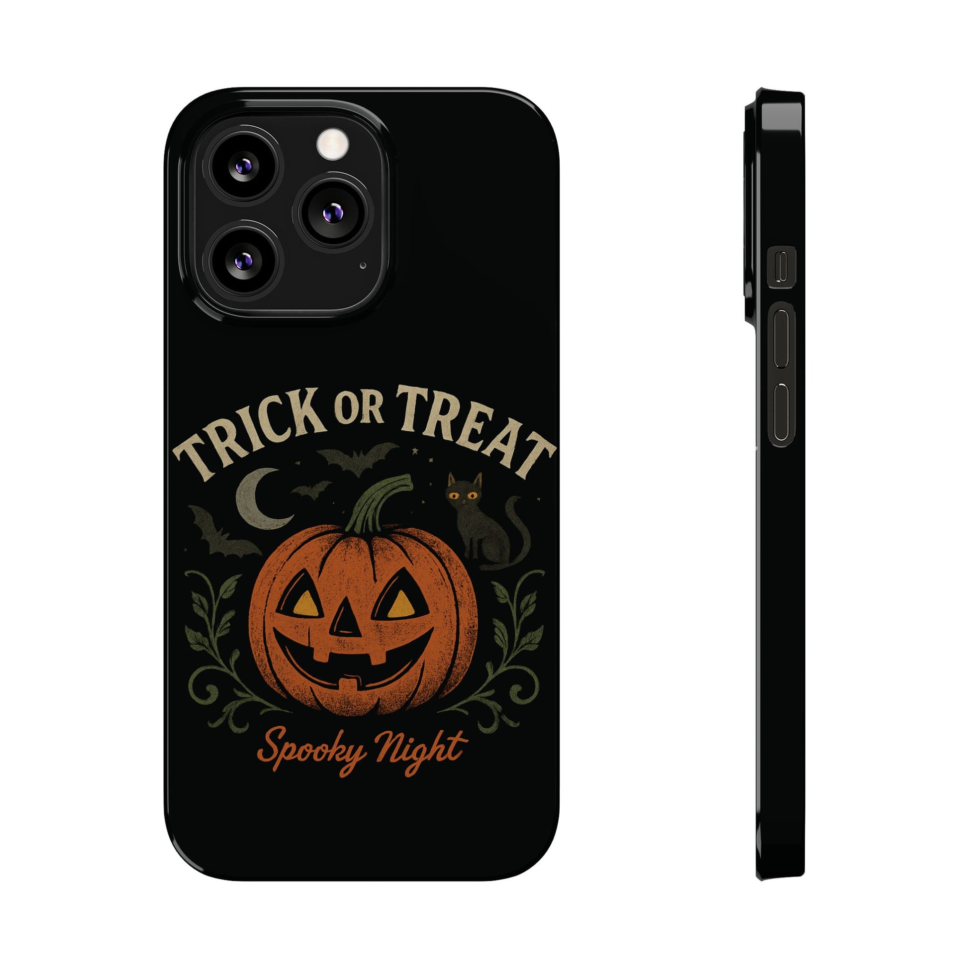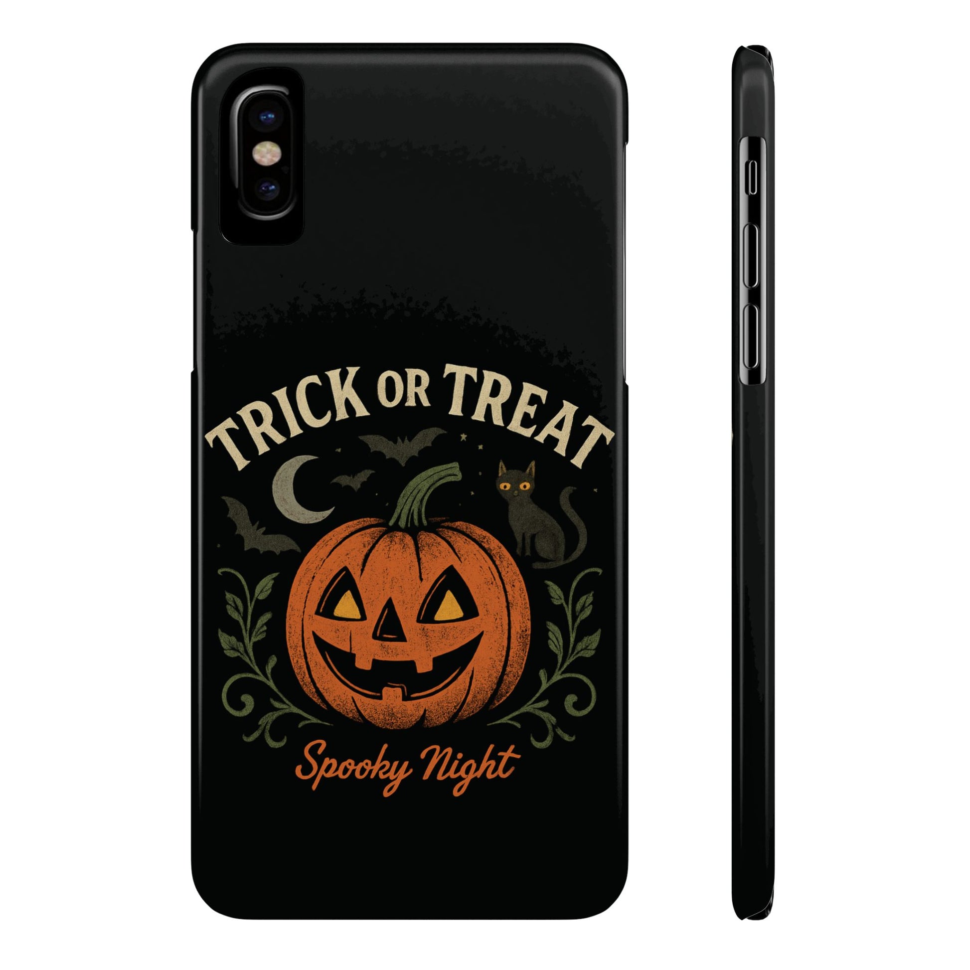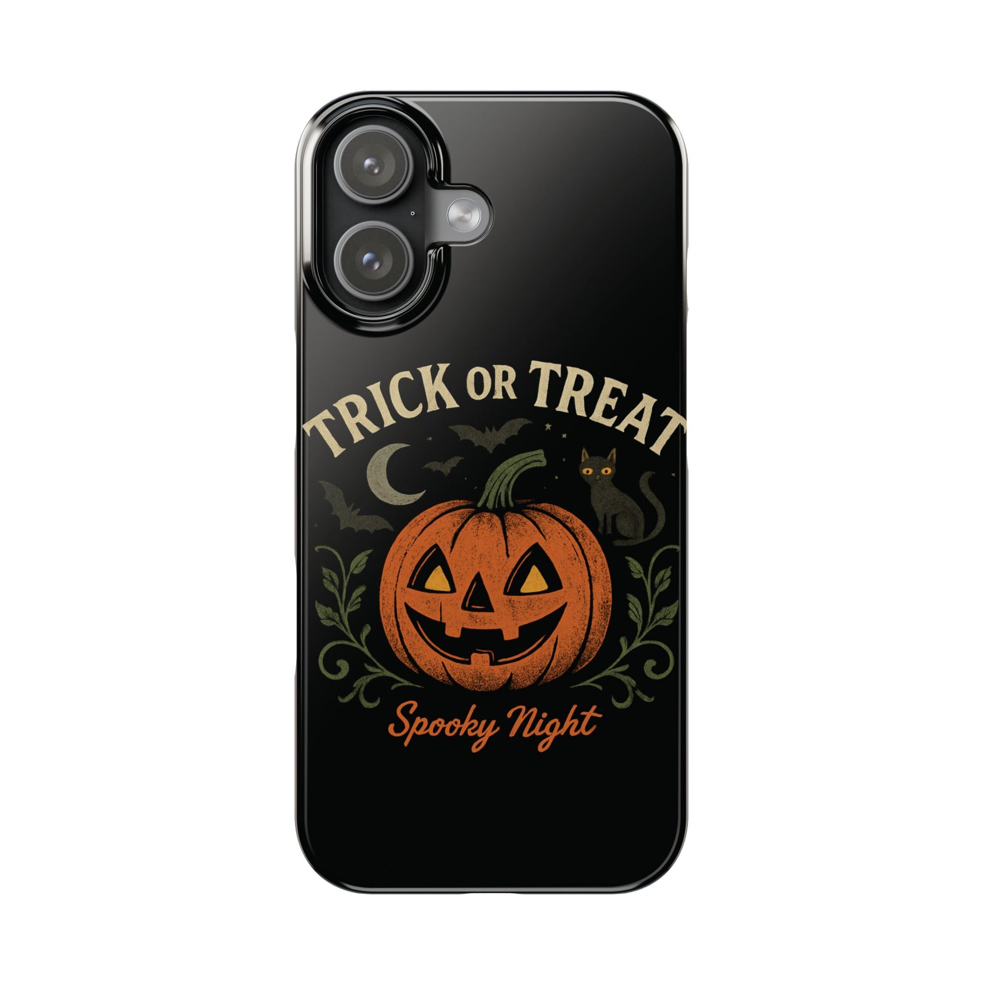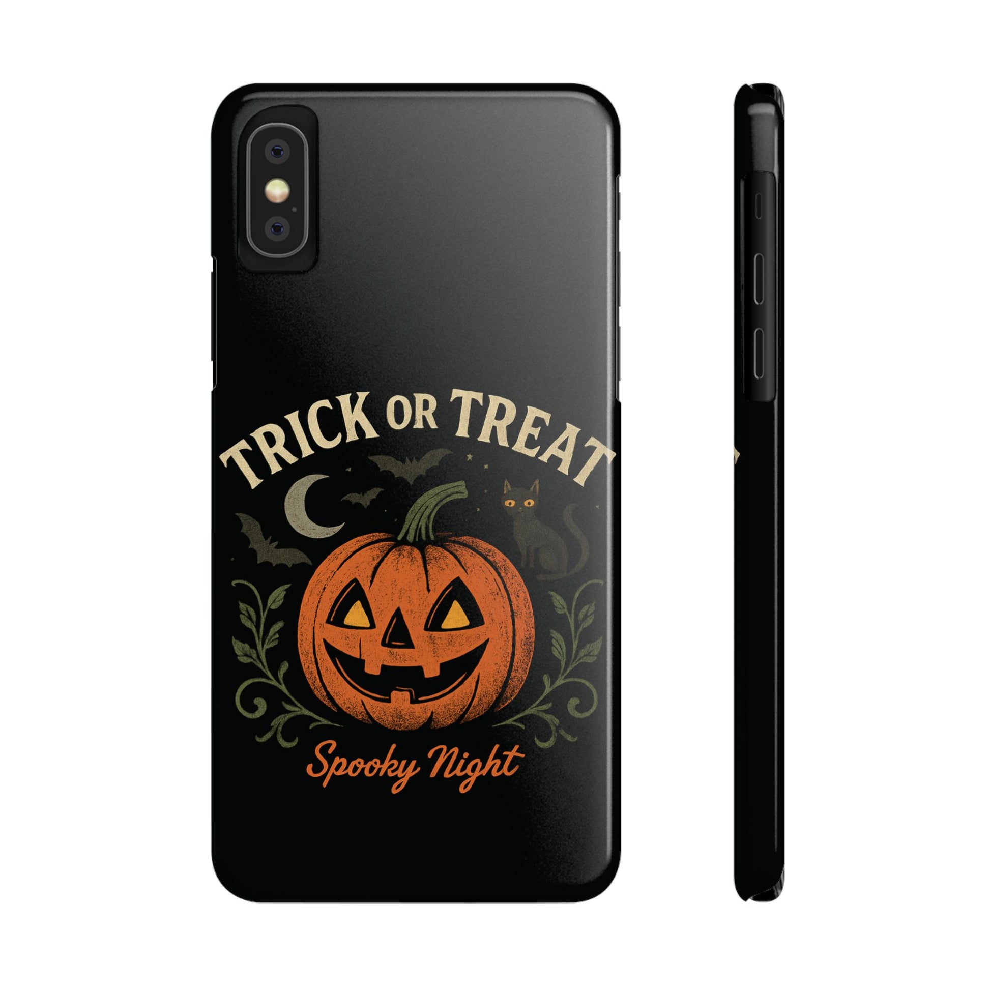 Transform your phone with the Halloween "Trick or Treat" Slim iPhone Case, ideal for embracing the festive spirit of Halloween! Adorned with a charming 'Trick or Treat' design, this case adds a playful touch while safeguarding against daily wear and tear. Its sturdy yet lightweight design easily integrates into your lifestyle, offering both protection and style. Perfect for Halloween enthusiasts and those in search of a stylish tech accessory. Utilize it for Halloween gatherings, trick-or-treating, or to showcase your seasonal enthusiasm!