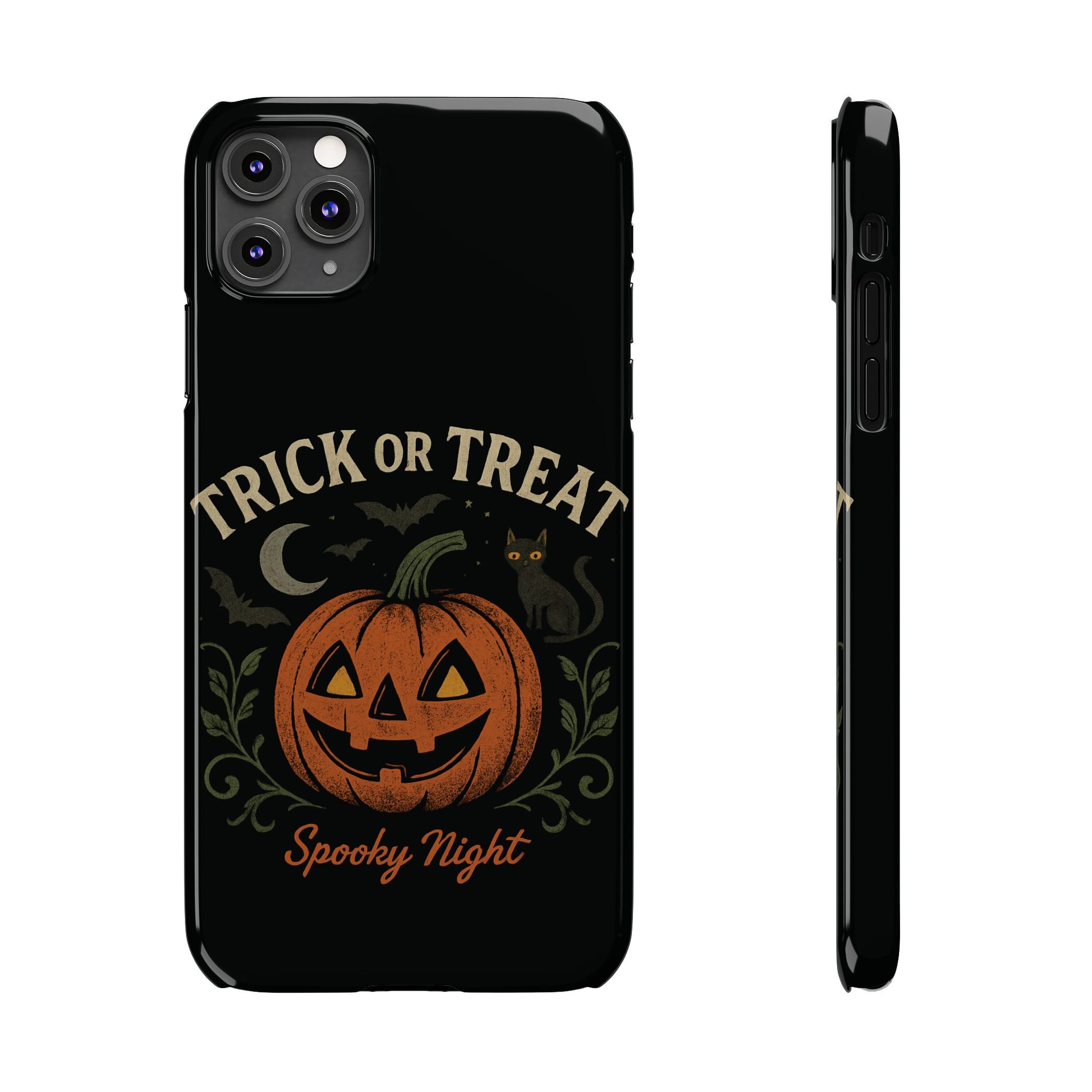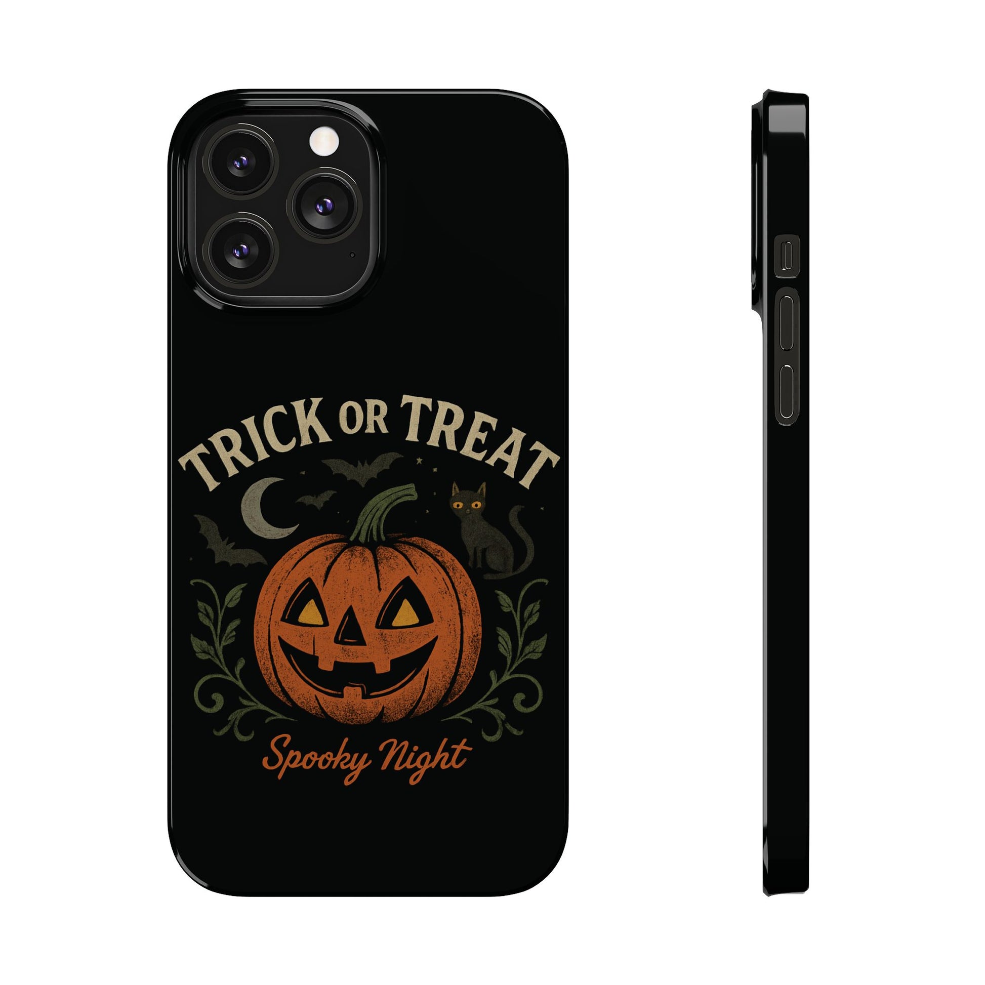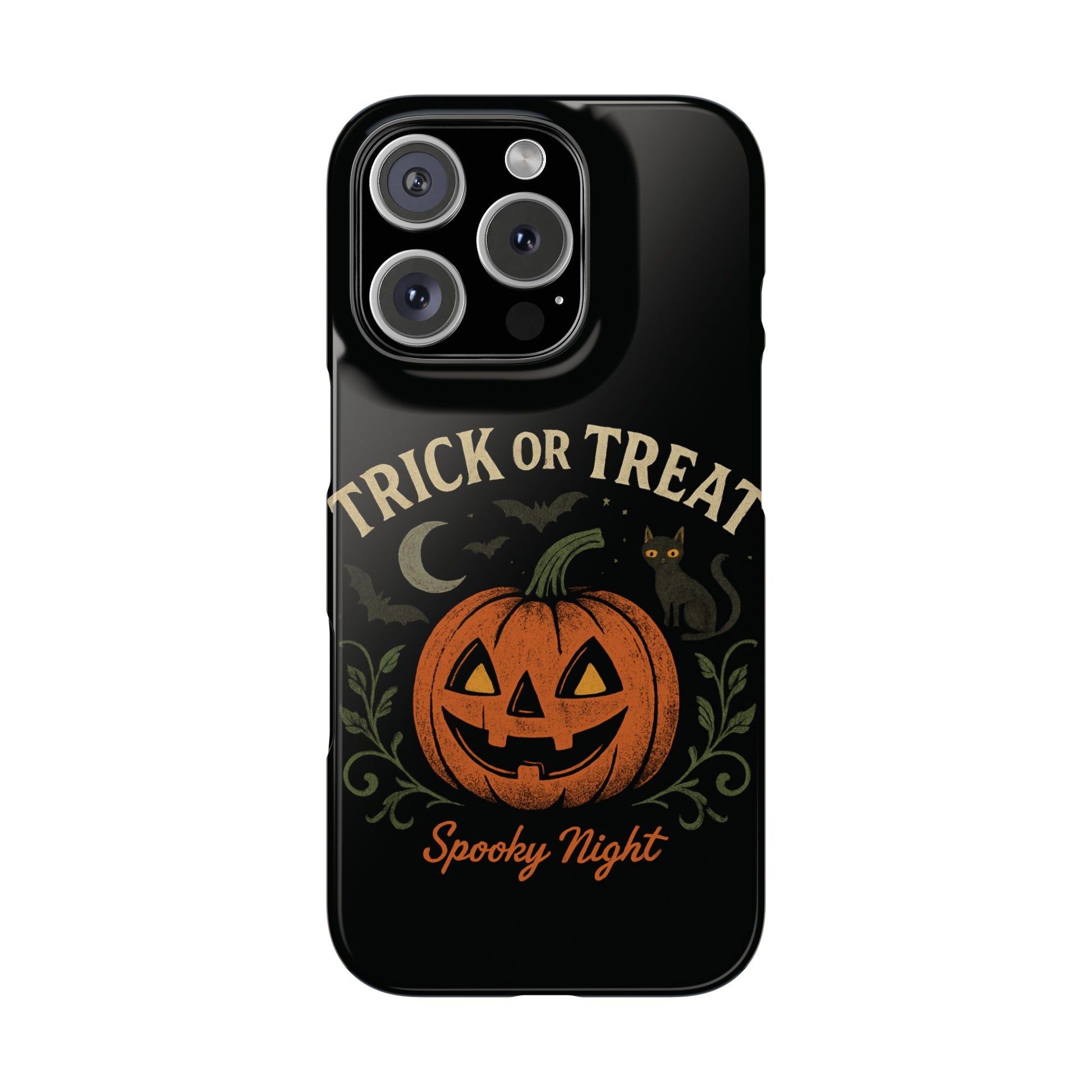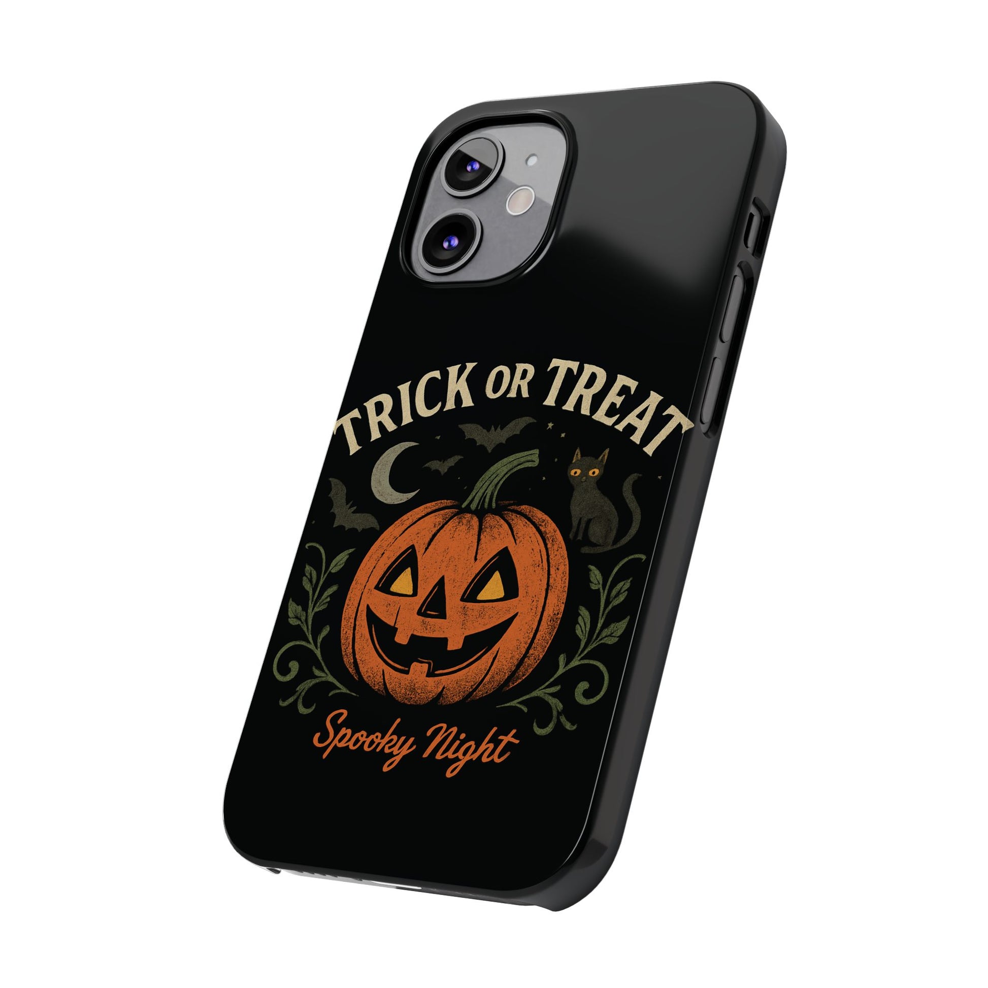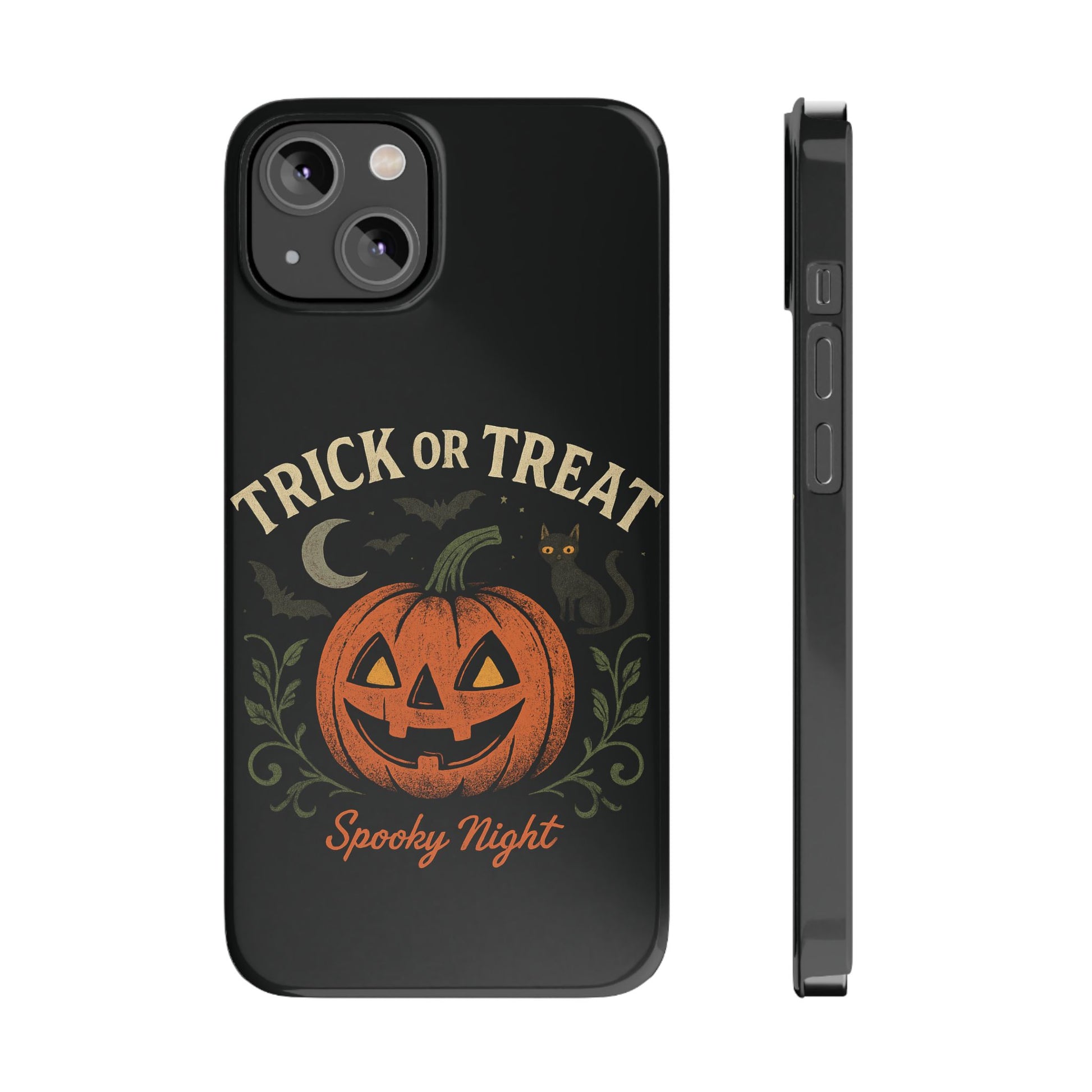 Transform your phone with the Halloween "Trick or Treat" Slim iPhone Case, ideal for embracing the festive spirit of Halloween! Adorned with a charming 'Trick or Treat' design, this case adds a playful touch while safeguarding against daily wear and tear. Its sturdy yet lightweight design easily integrates into your lifestyle, offering both protection and style. Perfect for Halloween enthusiasts and those in search of a stylish tech accessory. Utilize it for Halloween gatherings, trick-or-treating, or to showcase your seasonal enthusiasm!