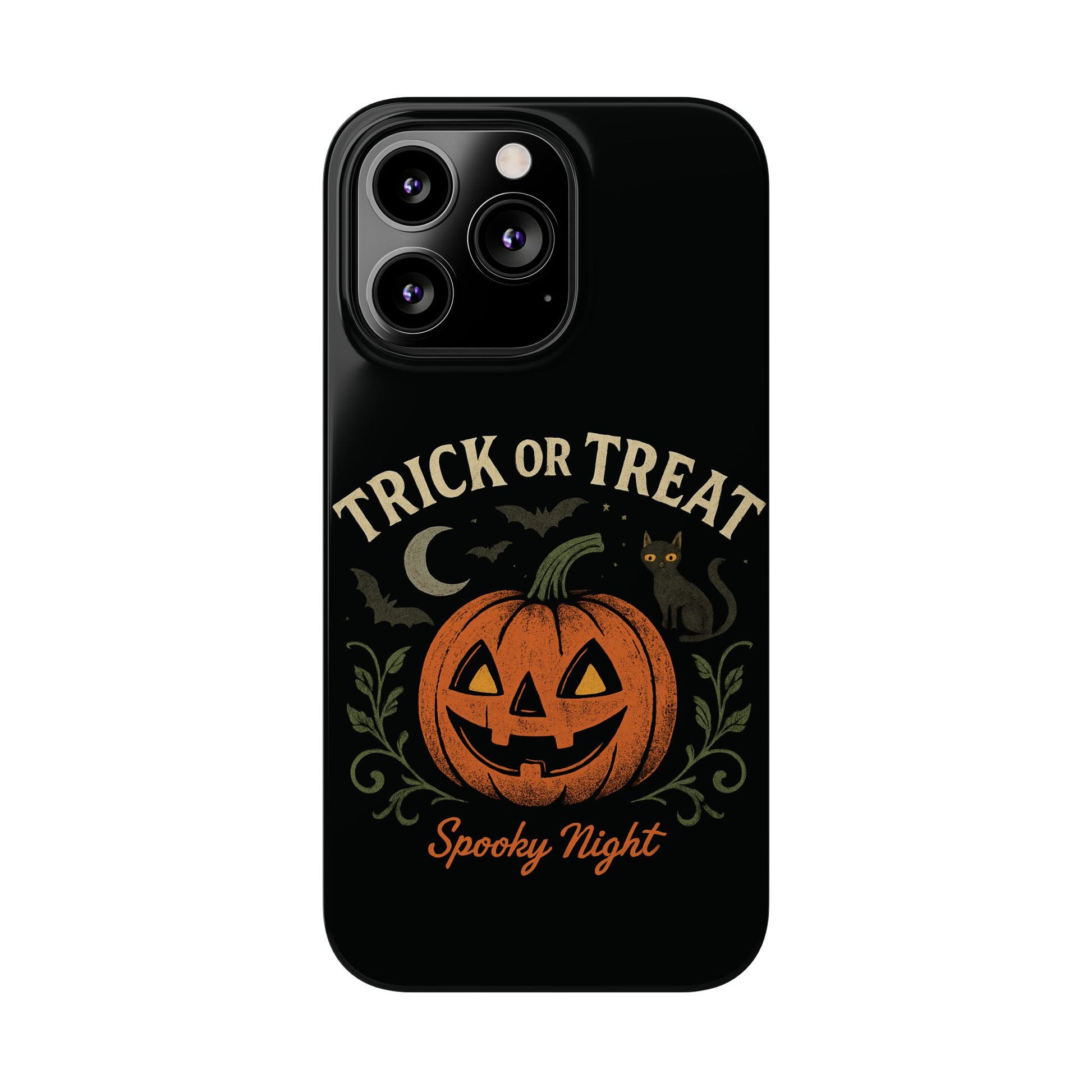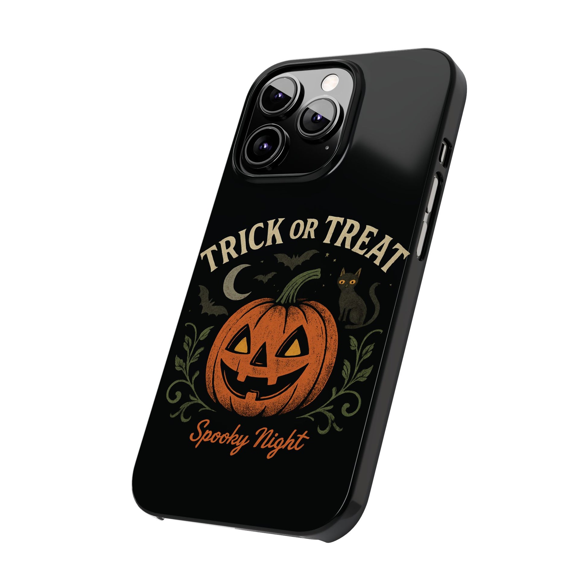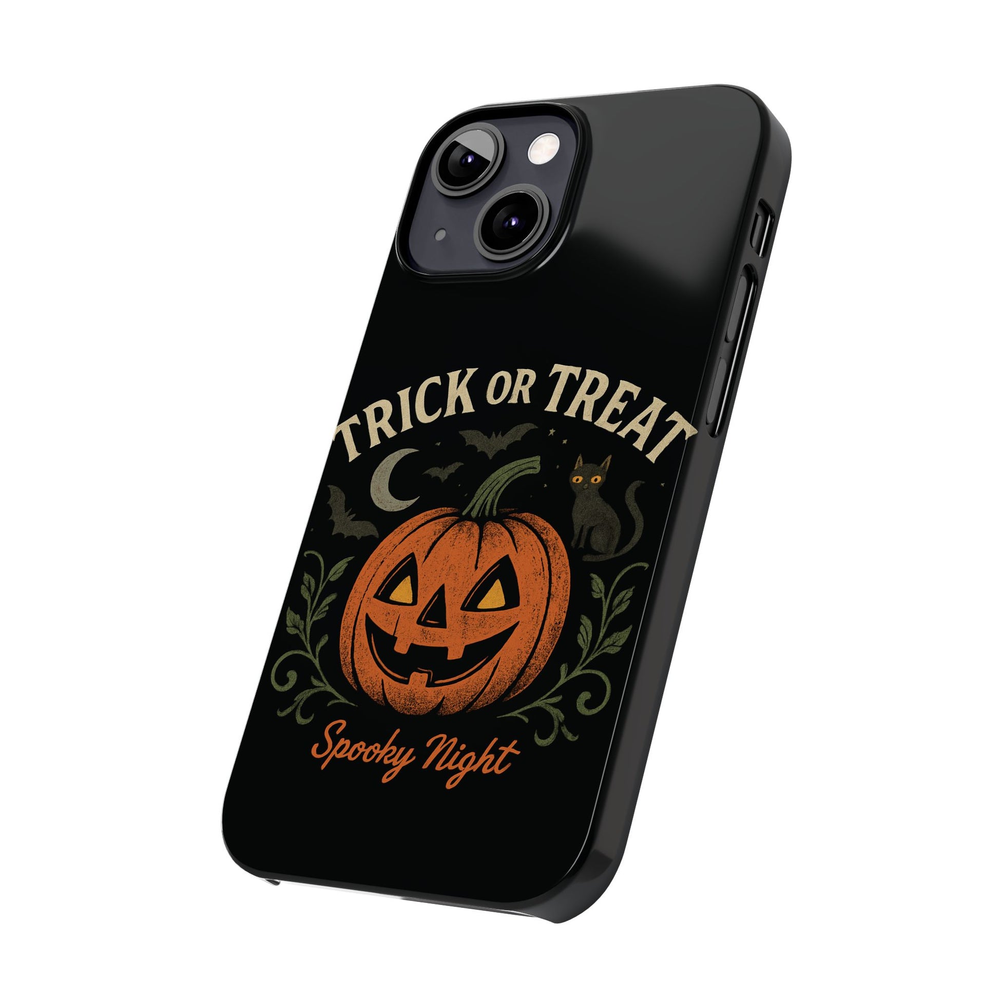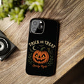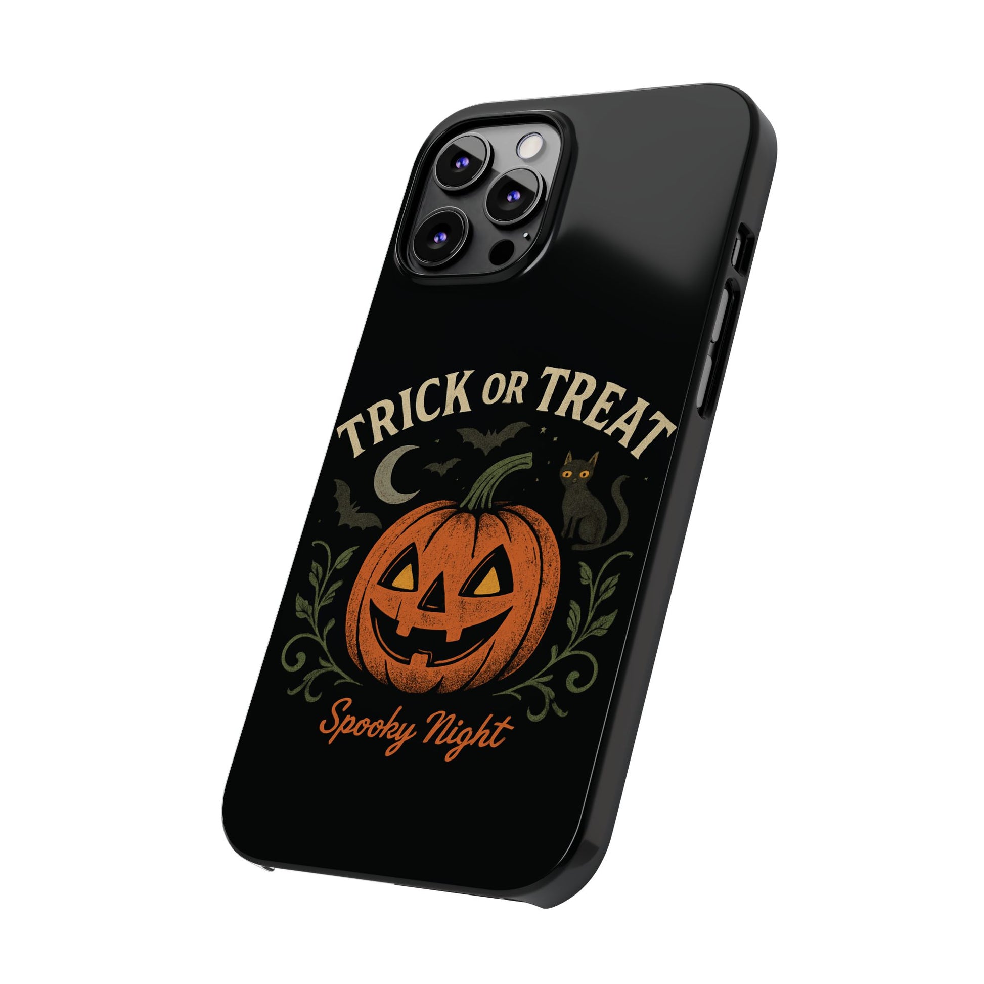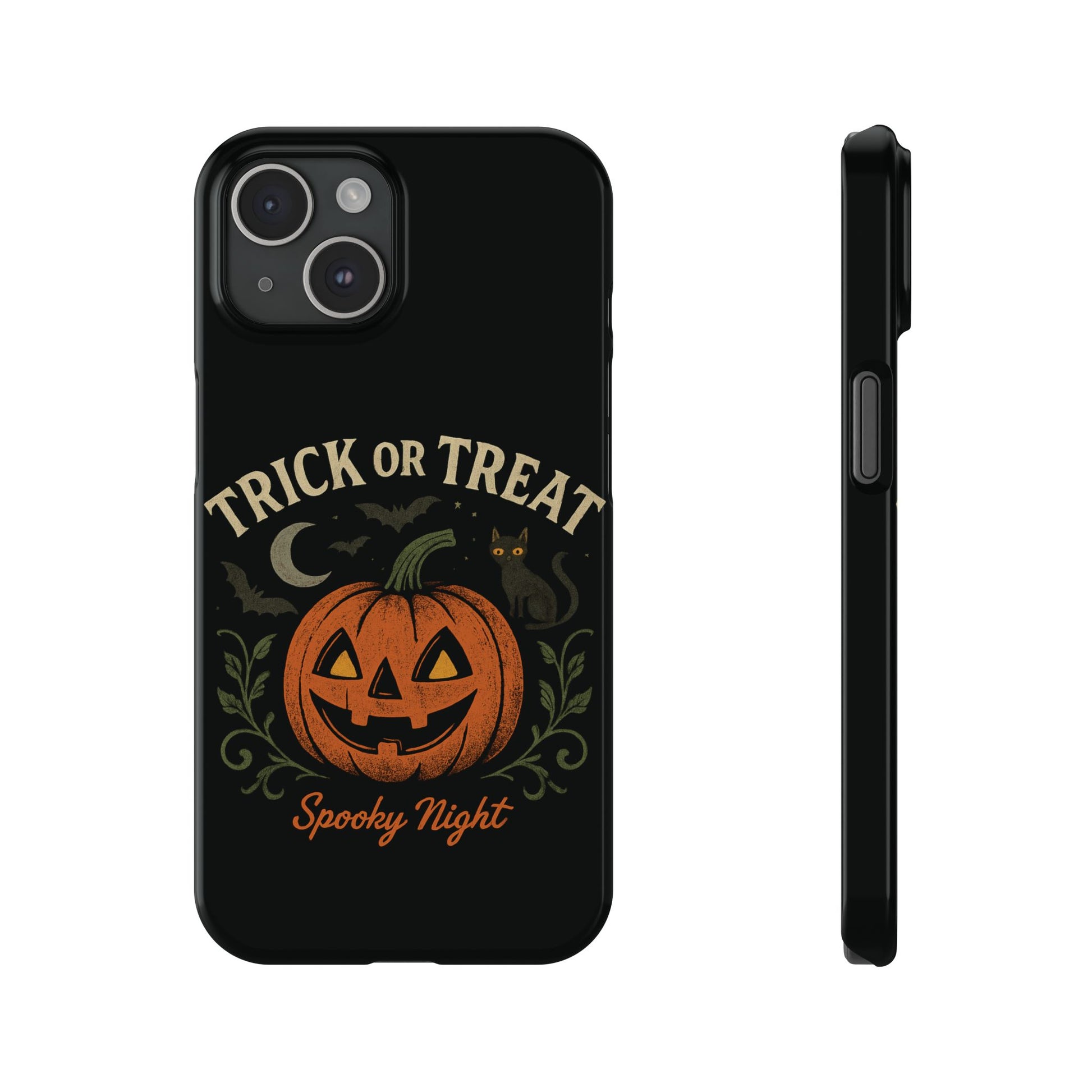 Transform your phone with the Halloween "Trick or Treat" Slim iPhone Case, ideal for embracing the festive spirit of Halloween! Adorned with a charming 'Trick or Treat' design, this case adds a playful touch while safeguarding against daily wear and tear. Its sturdy yet lightweight design easily integrates into your lifestyle, offering both protection and style. Perfect for Halloween enthusiasts and those in search of a stylish tech accessory. Utilize it for Halloween gatherings, trick-or-treating, or to showcase your seasonal enthusiasm!