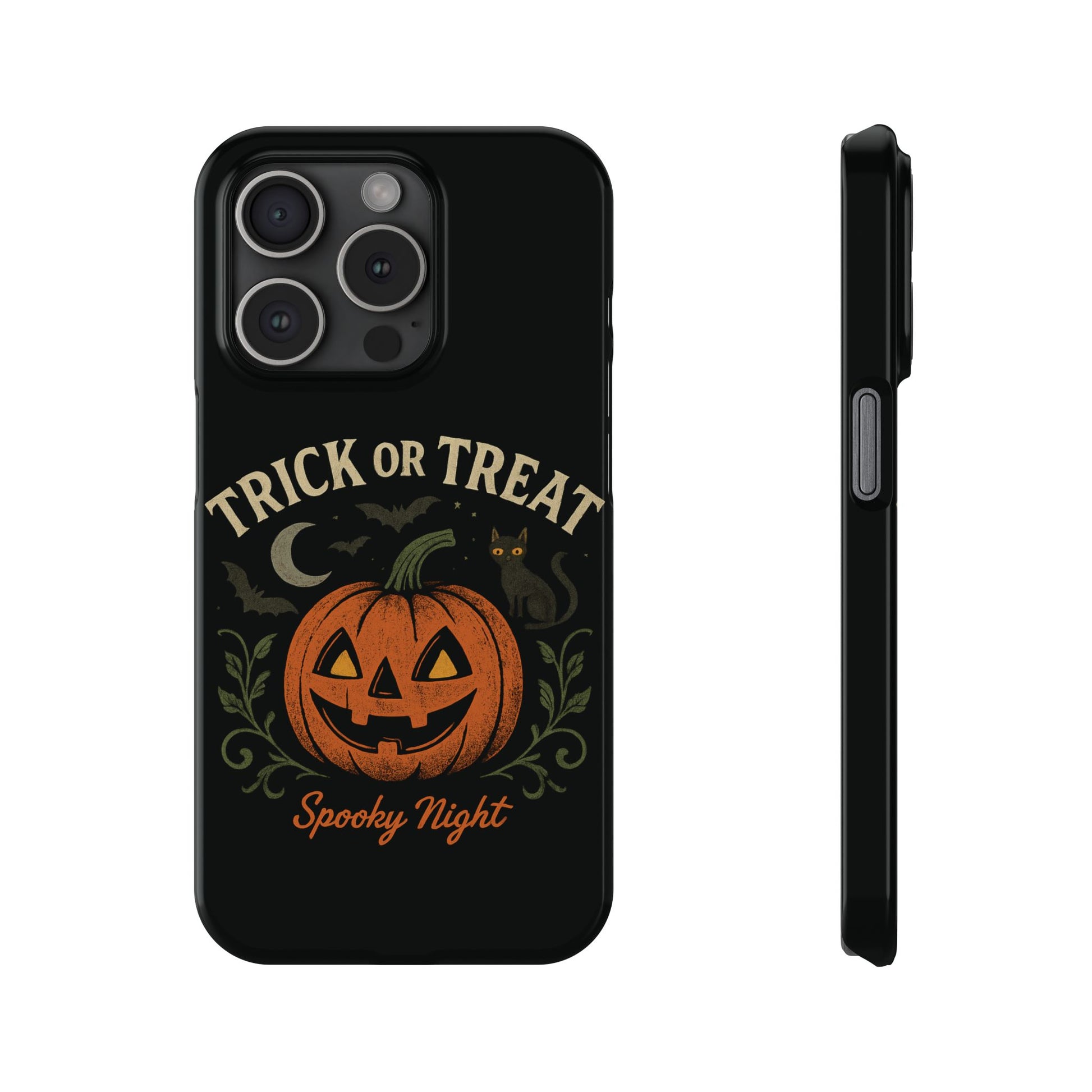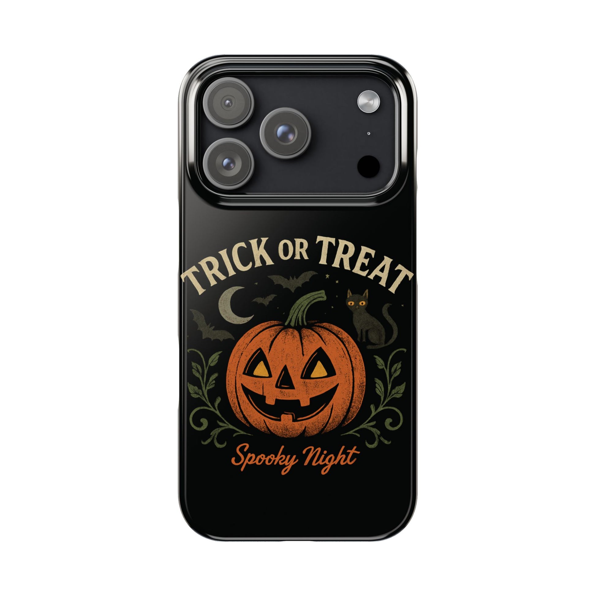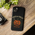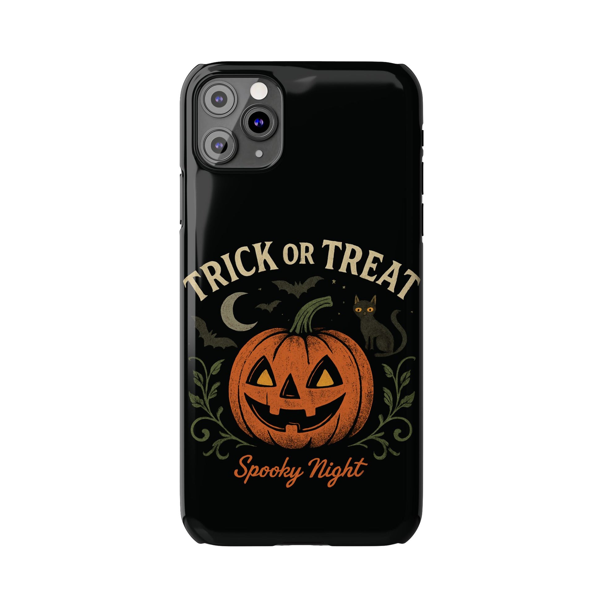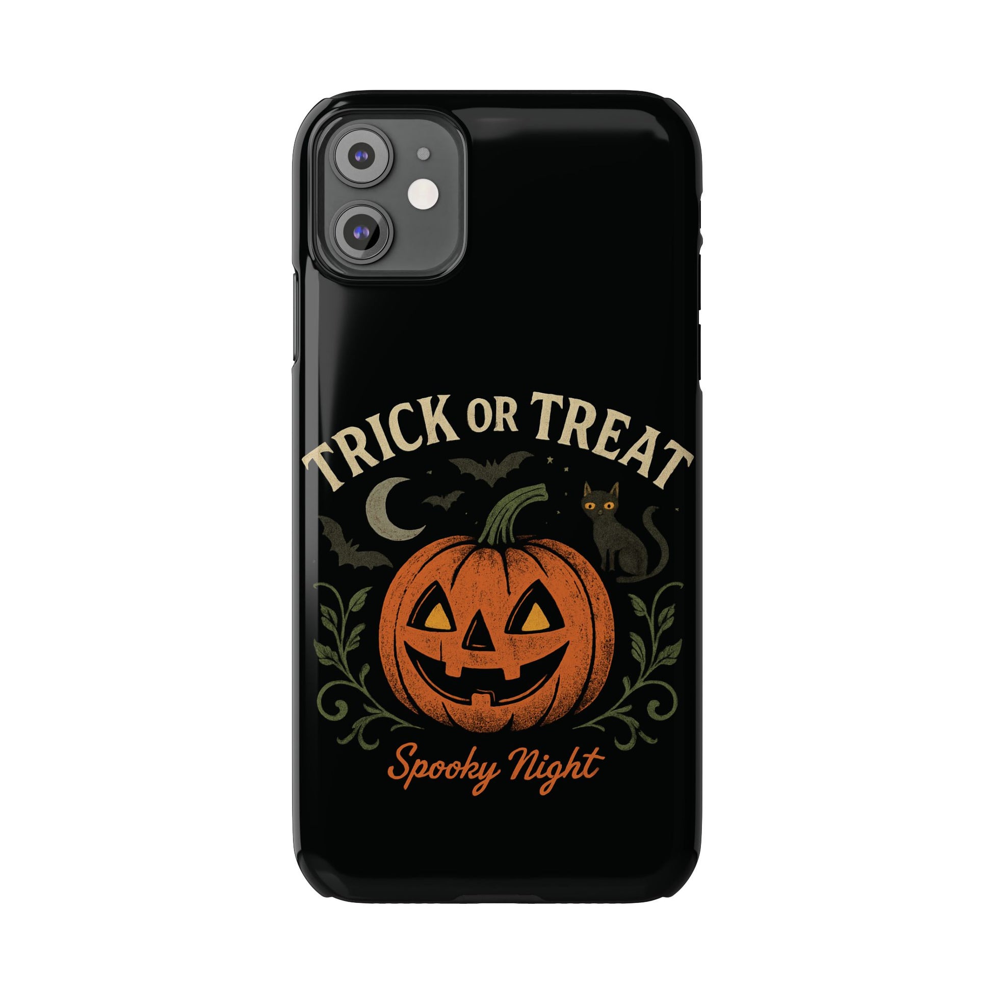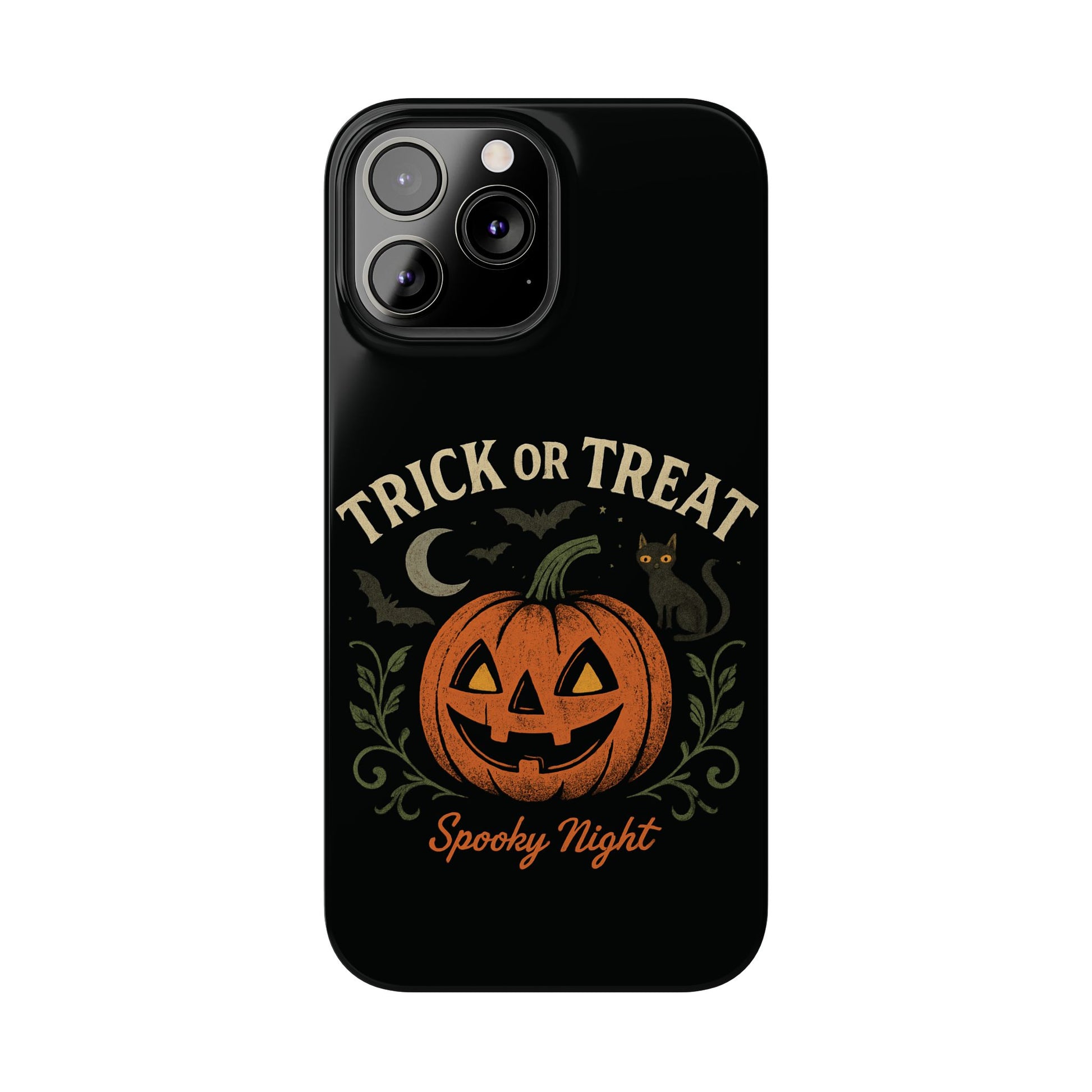 Transform your phone with the Halloween "Trick or Treat" Slim iPhone Case, ideal for embracing the festive spirit of Halloween! Adorned with a charming 'Trick or Treat' design, this case adds a playful touch while safeguarding against daily wear and tear. Its sturdy yet lightweight design easily integrates into your lifestyle, offering both protection and style. Perfect for Halloween enthusiasts and those in search of a stylish tech accessory. Utilize it for Halloween gatherings, trick-or-treating, or to showcase your seasonal enthusiasm!