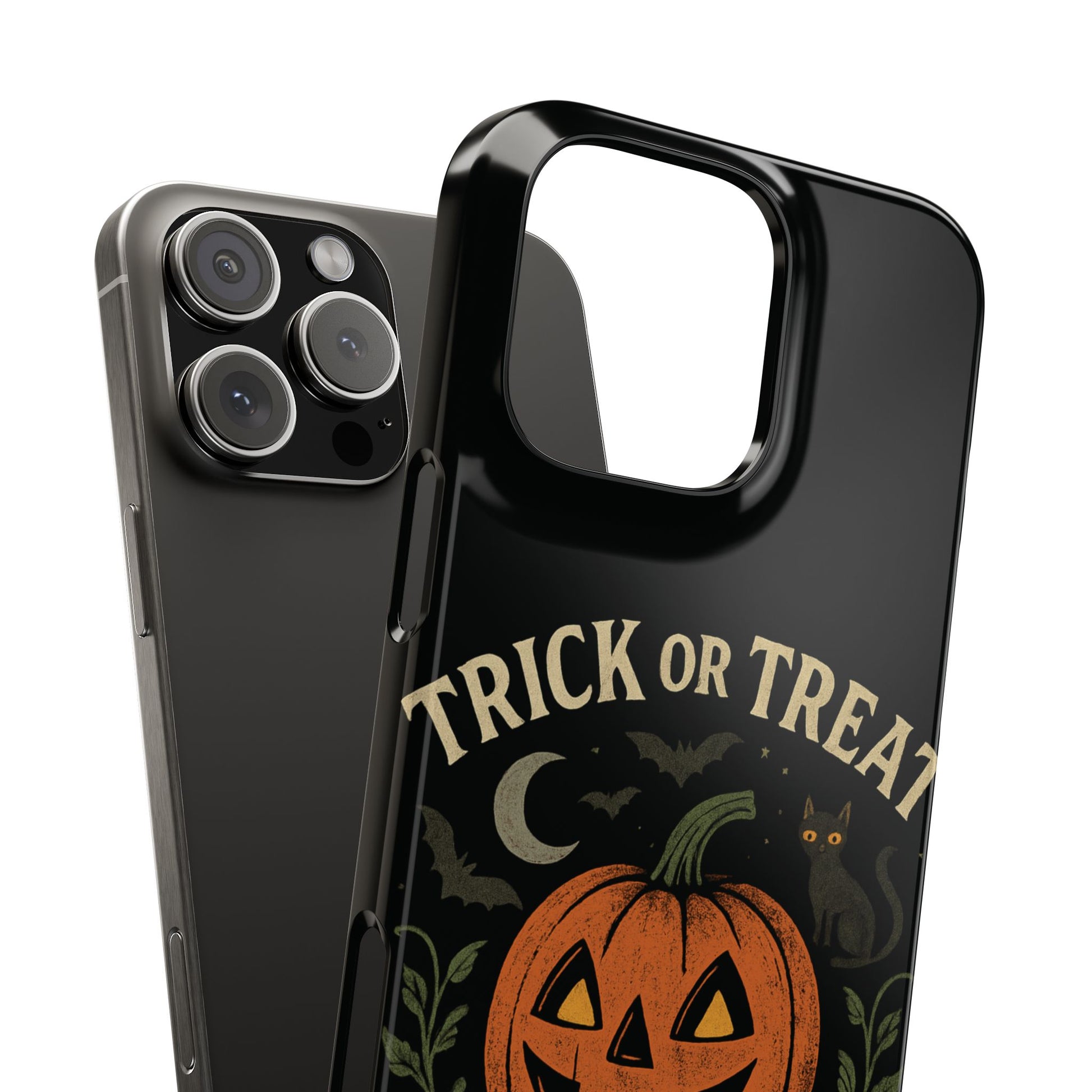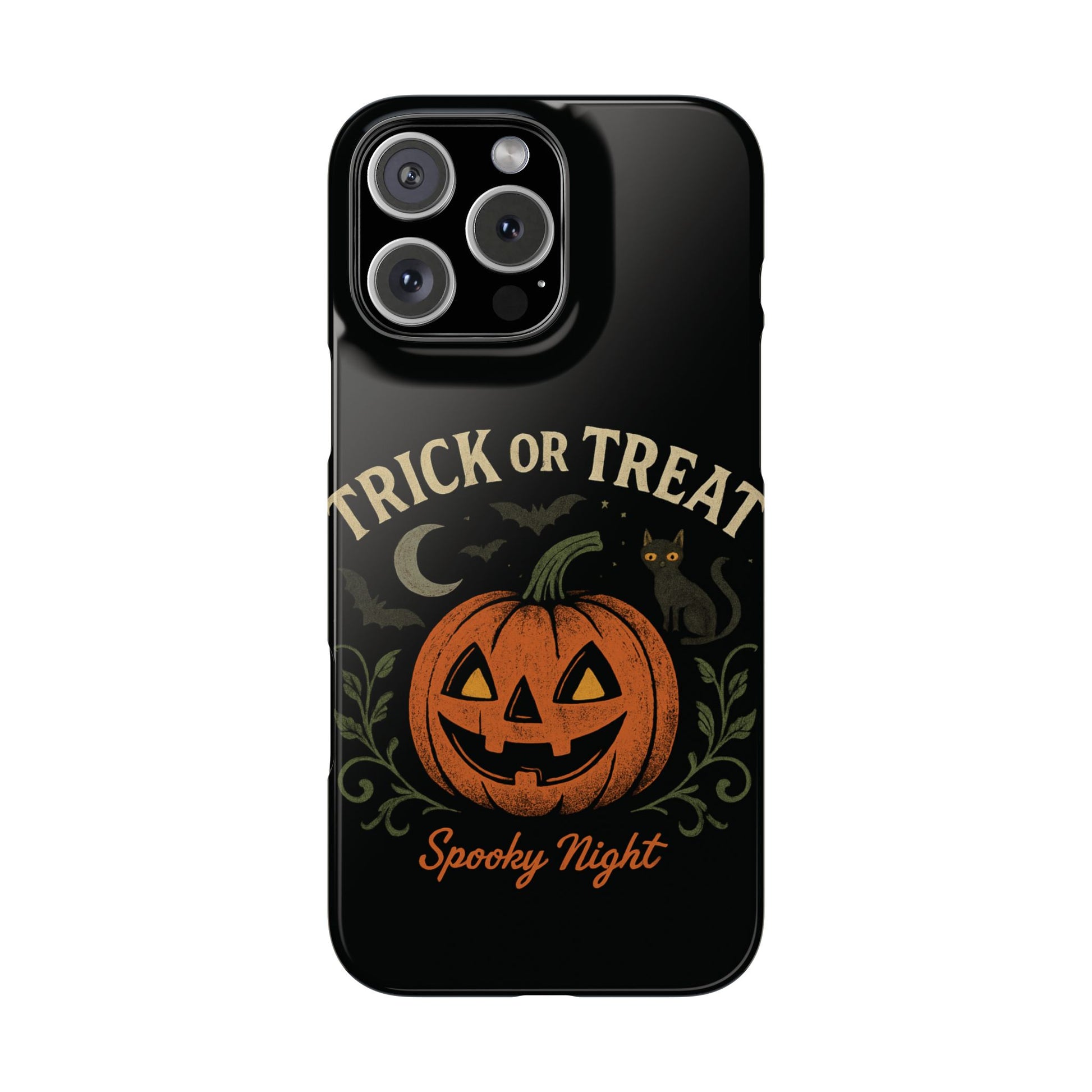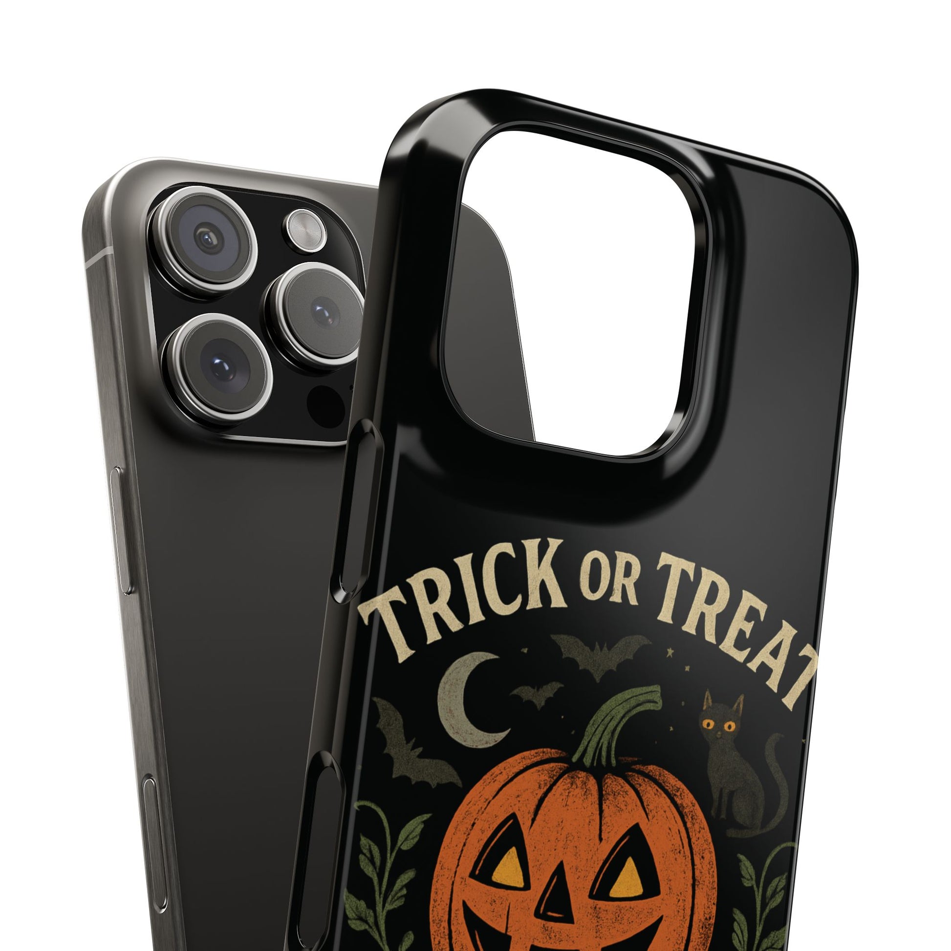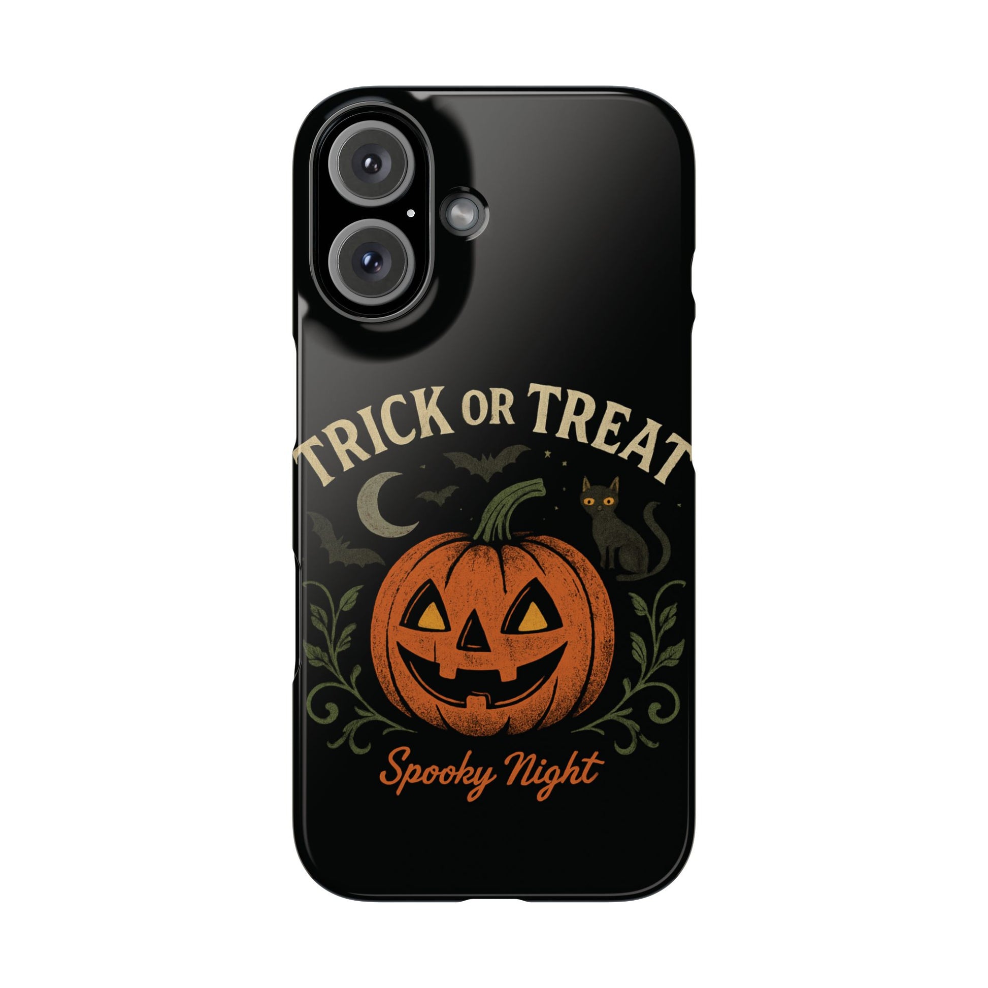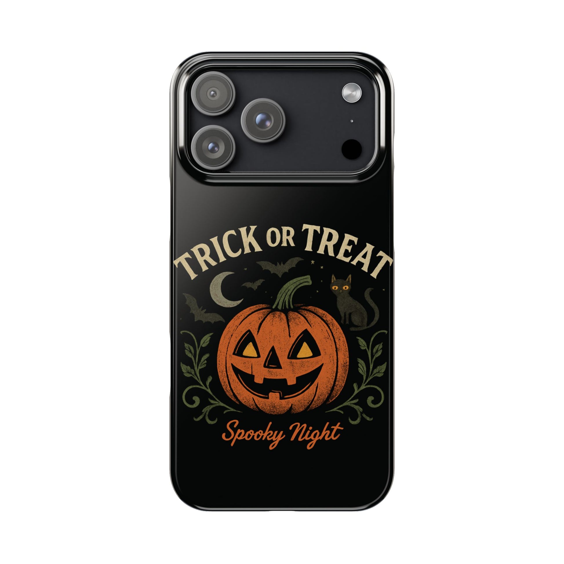 Transform your phone with the Halloween "Trick or Treat" Slim iPhone Case, ideal for embracing the festive spirit of Halloween! Adorned with a charming 'Trick or Treat' design, this case adds a playful touch while safeguarding against daily wear and tear. Its sturdy yet lightweight design easily integrates into your lifestyle, offering both protection and style. Perfect for Halloween enthusiasts and those in search of a stylish tech accessory. Utilize it for Halloween gatherings, trick-or-treating, or to showcase your seasonal enthusiasm!