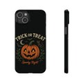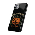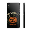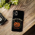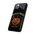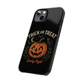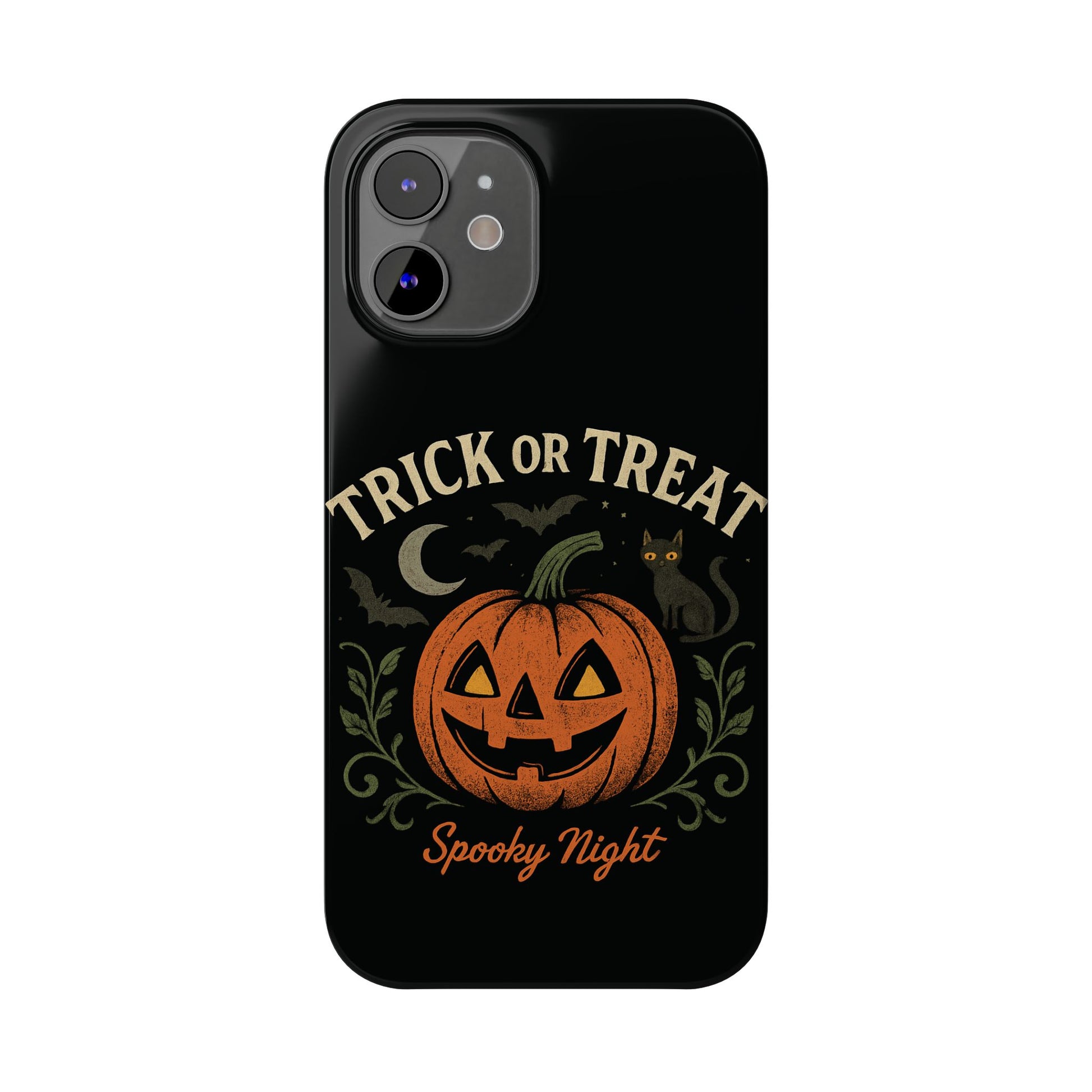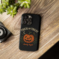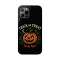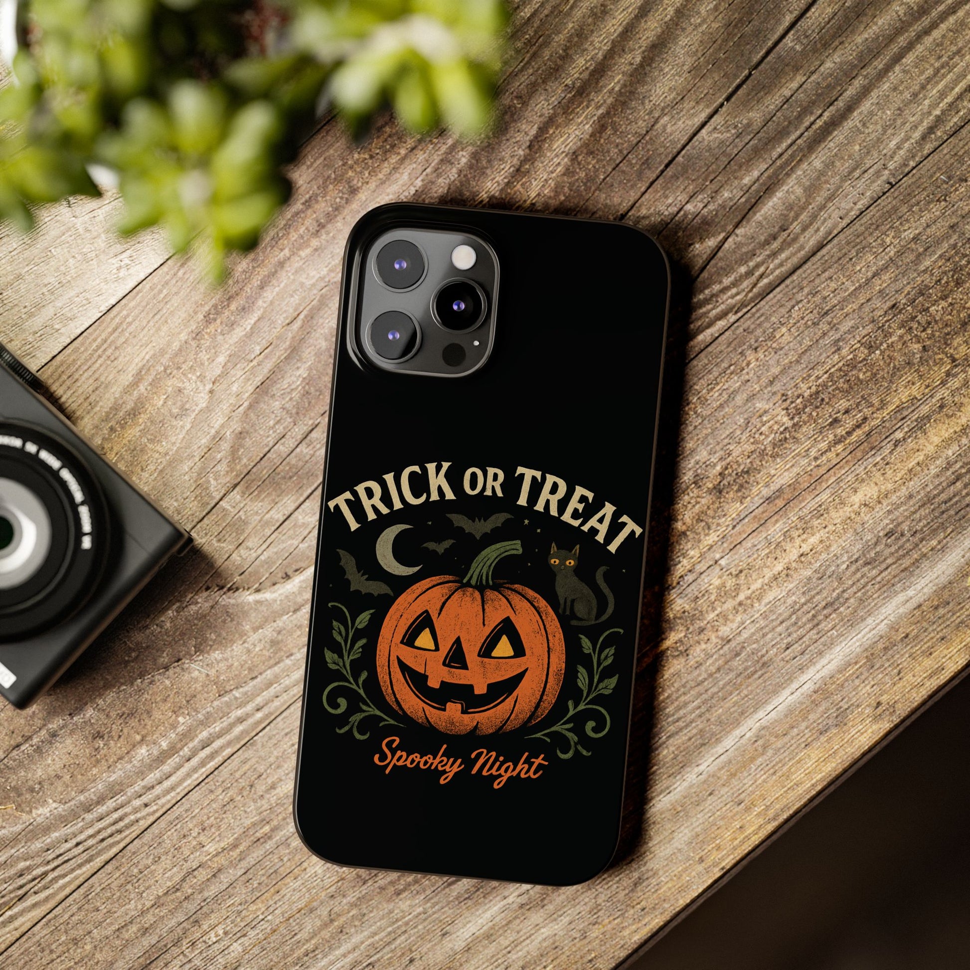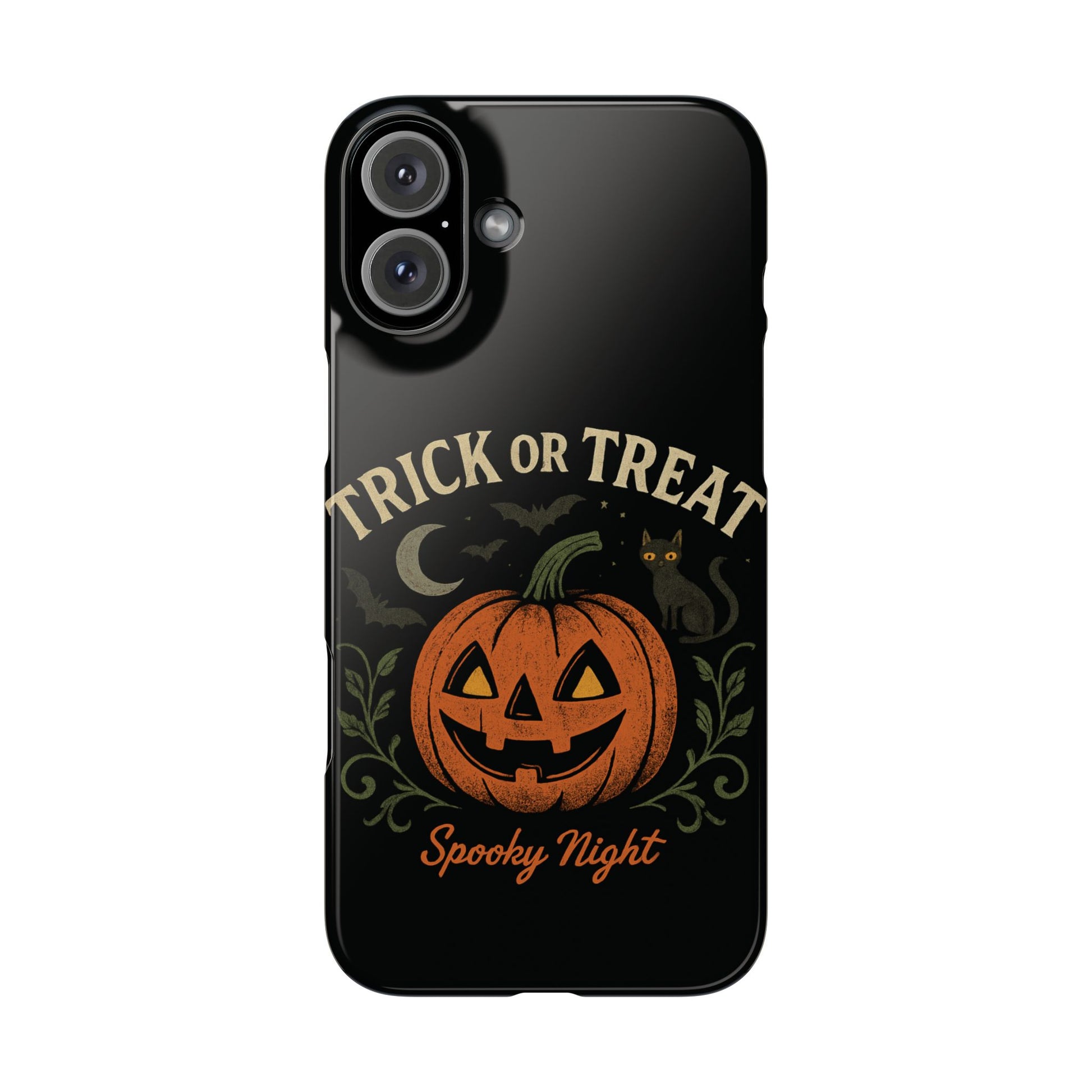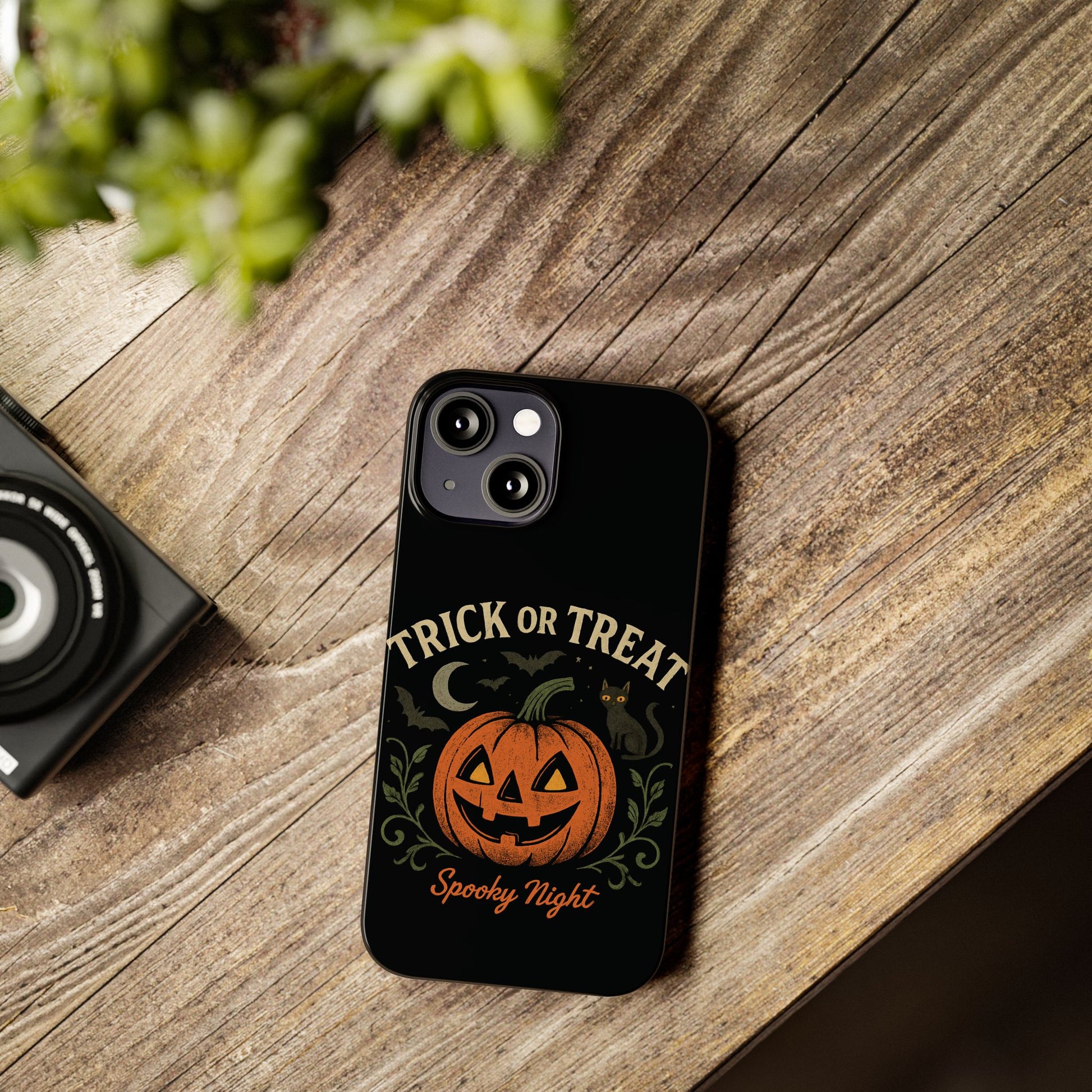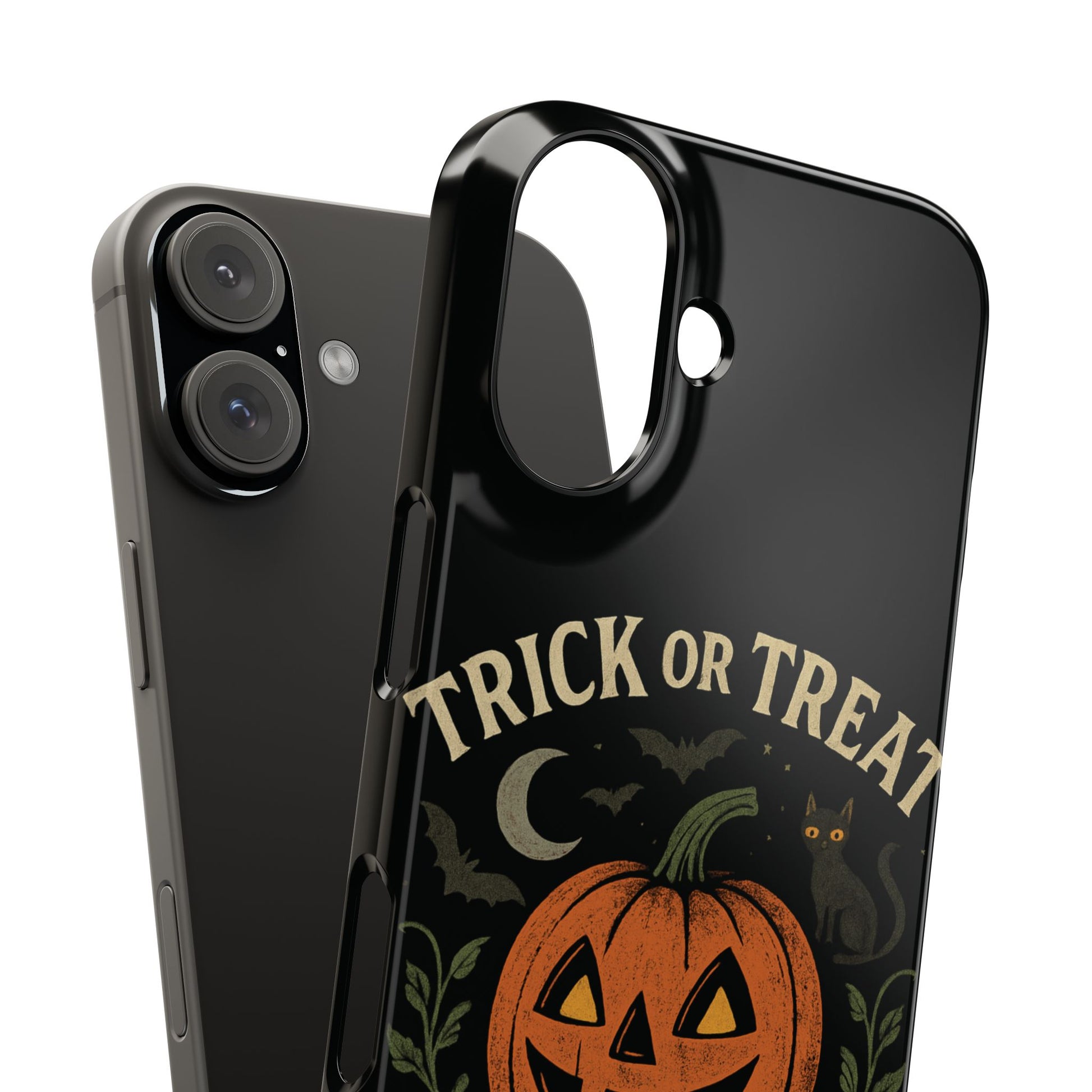 Transform your phone with the Halloween "Trick or Treat" Slim iPhone Case, ideal for embracing the festive spirit of Halloween! Adorned with a charming 'Trick or Treat' design, this case adds a playful touch while safeguarding against daily wear and tear. Its sturdy yet lightweight design easily integrates into your lifestyle, offering both protection and style. Perfect for Halloween enthusiasts and those in search of a stylish tech accessory. Utilize it for Halloween gatherings, trick-or-treating, or to showcase your seasonal enthusiasm!
